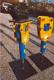 In blau-gelber Farbe lackiert